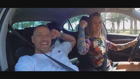 Веселая чика гладит пенис приятеля, который сидит рядом на пассажирском сидении. Вскоре горячий ствол находится у нее в руке и, соблюдая скоростной режим до 60 километров в час, она начинает лихорадочно двигать рукой, пока счастливчик Матео подбирает разные ракурсы, чтобы показать это крупным планом и отдалить камеру, чтобы было видно их полностью. Дорога практически пустая, никто не мешает едущему транспортному средству перестраиваться особо не глядя в зеркала, а сама любительница спермы вскоре снимает колечки с пальцев и доводит член до оргазма, слизывая свежую сперму с руки.