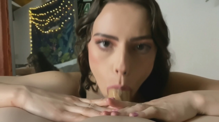 Умелая любительница кожаных леденцов села на колени перед бойфрендом, чей вкусный член она принялась усиленно закидывать в свою глотку, а она у милочки очень глубокая и не вызывает вообще никаких рвотных позывов, когда головка щекочет изнутри. Все чуть более полуминуты возле зеркала, но она смогла заинтриговать своей пососакой так, что хочется надавать ей в рот что-нибудь еще побольше, чтобы она прямо давилась, глядя тем же томным взглядом в камеру. Интересно, о чем красотка в этот момент думает?!