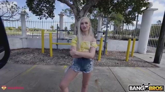 Несколько веселых парней в одном фургоне выехали на улицы города поколесить и развлечься, но какая может быть локальная вечеринка ребят без девушки? Одна из претенденток шла по тротуару и говорила по телефону. Ее попросили уделить всего несколько минут времени на разговор и дали первые деньги - 100 долларов. Да, за такую задачу они очень легкие, но если потрудиться сильнее, то можно заработать еще. Ну, например, 500 долларов. Во время беседы она рассказала как пытается искать парней с большим членом и к ее удивлению один такой был внутри и готов трахнуть блондинку, которая проглотила вкусную сперму и вышла, чтобы ее сфотографировали напоследок, после чего негодяи дали по газам, оставив ее непонятно где.