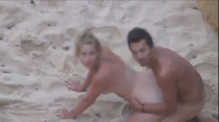 У парочки отдыхающих на пляже случился спонтанный секс. Ну с кем не бывает. Но дело тут в том, что делают они это прямо рядом с мостом, где обильно протекает толпа людей, остановившихся посмотреть на пикантное шоу с камерами. Трахающиеся любовники это заметили, остановились на пару секунд, повернув головы назад, девушка что-то сказала своему кавалеру при этом продолжая по чуть-чуть насаживаться на его пенис, а потом и он решил забить на зевак и продолжить свое любимое занятие по долбиловке рачком, ведь так приятно находиться членом в этой дырочке и биться о крупную мягкую задницу подружки.