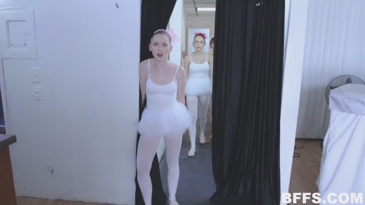 Кто-то подглядывает за тремя переодевающимися балеринами, которые готовятся к занятиям. Это новенький, заменяющий инструктора Дейва и, если девчонки не готовы продолжить урок с незнакомым мужчиной, они могут смело уйти. Сомневающиеся подружки все же решили остаться, вроде как ничего криминального не происходит. Кроме странного предложения показать секретный метод как растянуться еще лучше. Малышки в белом взмолились не томить и вообще не ожидали, что незнакомец достанет мясистый член. Они втроем припали его сосать, а секрет оказался прост - нужно потрахаться в пилотки и хоть к ушам ноги тяни.