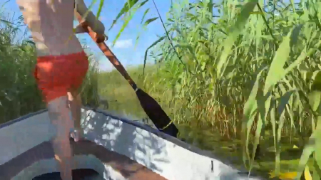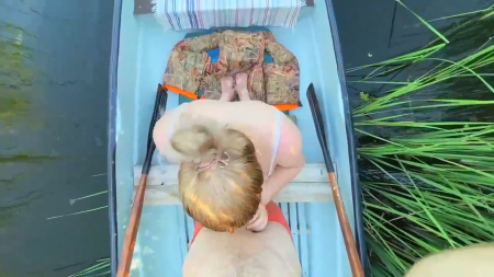 В хорошую летнюю погоду двое отплыли от своей дачи в ближайшие кушари озера. На заднем фоне слышны другие голоса, звуки моторов лодок, но это точно не остановит любовников, чья основная задача на данном видео - поебаться вдоволь и не быть застуканными. Самка открыла взору большую натуральную грудь, после чего моментально оказалась сверху на члене. Чуть позже она встала на колени и покачивающимися движениями начала насаживать вагинальное отверстие на длинный тонкий член. Парню пришлось самому дрочить, чтобы достичь оргазма, благо вид на пышную жопу ему достаточно помог.