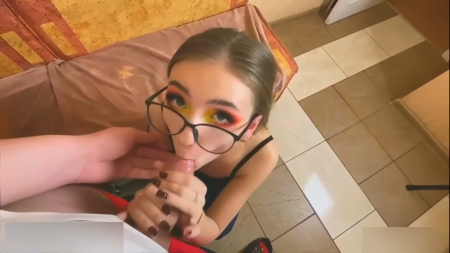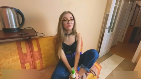 В гости к молодому человеку заглянула такая же молоденькая соседка. Украиночка в очках выходила покурить и внезапно закрылась дверь в квартиру, а ключи остались там же. Девчонка долго стояла в подъезде в ожидании хуй пойми чего, а потом решилась напроситься в гости к соседу погреться. Он вместо чая предложил по пивку, оно-то и разговорило кошечку, признавшуюся, что она часто слышала как парень трахается за стеной и ее всегда это немножко заводило. Уж очень интересно теперь ощутить на себе то, из-за чего были такие звуки, только придется обоим изменить своим отсутствующим дома вторым половинкам.