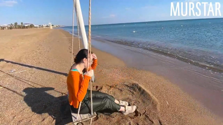 Молодой человек с камерой прогуливался по пляжу подальше от цивилизации и заметил как кофта девушки валяется на песке, а сама она качается на качелях перед морем, откуда дует холодный ветер. Ради беседы и нового знакомства на отдыхе за спиной жены парень пригласил новую подружку выпить водички в кафе неподалеку, заодно поговорить. Ребята друг другу понравились и тогда они пошли дальше - проследовали в его номер, где действительно выпили теплый напиток. Но во время чаепития из вида стал сильно выбиваться стояк женатика, на котором решилась прокатиться чикуля в очках, очень громко прокатиться.