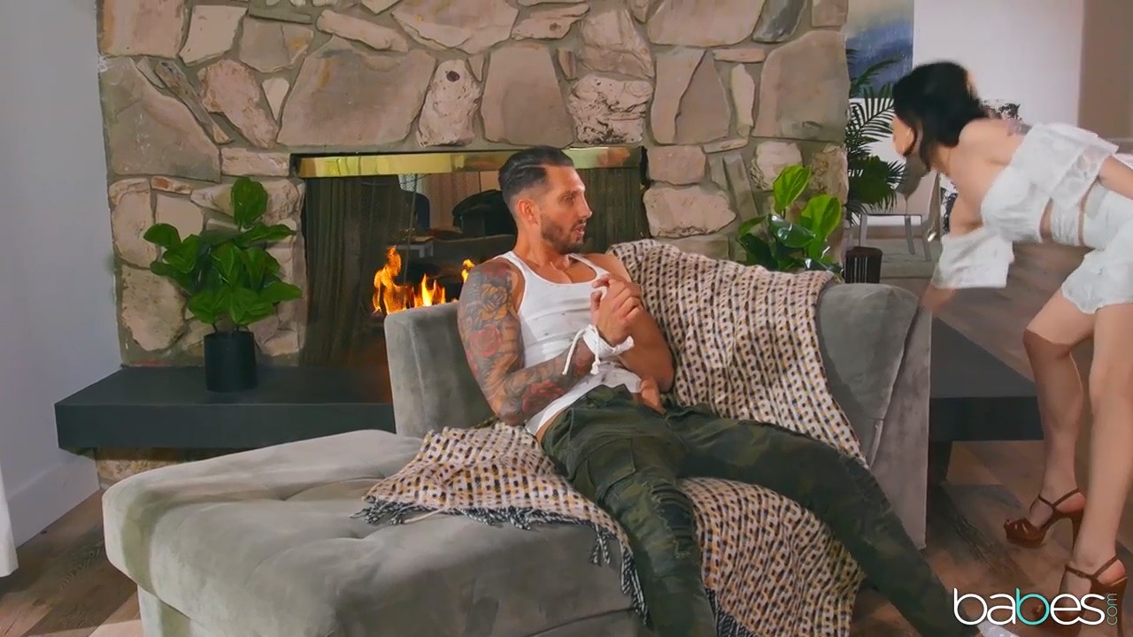 Мужчина в грязной майке со связанными руками пытается сбежать от преследования по улицам коттеджного поселка и забредает спиной на чужой участок, пытаясь спрятаться за углом дома. Там его окрикивает красивая хозяйка, которая видит беспомощность незнакомца и соглашается его приютить ненадолго в обмен на наличку. Выбора большого у парня нет, поэтому он делает все, что ему прикажут и даже не сопротивляется когда его руки вешают на вешалку, а штаны расстегивают, чтобы сделать минет. Впереди преступника ждет просто ошеломительный секс и самое удивительное - ему разрешили забрать обратно украденные баксы.