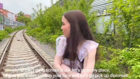 Молодой человек побежал искать за школу свою одноклассницу, найдя на железнодорожных путях неподалеку. Она стояла с палочками и курила сигарету, чтобы не провоняться. По ней было видно, что она уже приняла сворованного у учителей алкоголя и не хотела идти на торжественный выпускной. Одноклассник из-за этого повел забивную девчонку к себе домой, чтобы отрезвить и ненароком присунул ей, кончив внутрь. Нужно было сделать все быстро, так как скоро должна прийти бабушка, оставившая очень важный "документ", в котором свидетельствовалась правда: одноклассники - это брат и сестра!