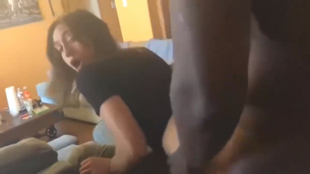 Супруг еще никогда не видел свою даму сердца настолько возбужденной. Развратница всегда ему говорила, что хотела бы попробовать секс с чернокожим, но куколд даже не предполагал, что она так сильно будет кричать в экстазе. Милую особенно мощно заводит как рогоносец комментирует ее измену лежа животом на спинке диване, а брюнетке так и хочется повернуть голову назад и любоваться его веселым и смущенным лицом одновременно, но кайф, накатывающий волнами, заставляет шею поворачивать голову то вперед, то назад. Большой черный хуй делает свое грязное дело!