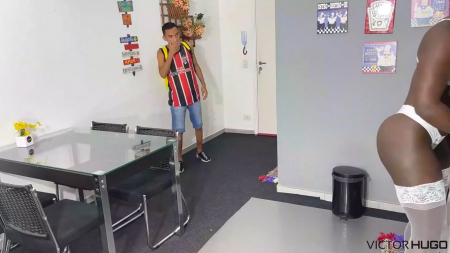 Домработница в этот день задержалась в доме клиентов, так как пришла позднее. Ее даже не предупреждали, что в определенное время вернется сынок хозяев с учебы, но это все равно произошло. Мелкий говнюк достал свой хуй и стал из-за спины дрочить на крупную задницу женщины, которая даже не удивилась, ведь она стояла лишь в одном нижнем белье, намывая посуду на кухне. Дама потрогала его стояк, опустилась на корточки и отсосала, после чего дала полюбоваться своей попой и облить ее маслом, положила парнишку на пол и стала прыгать на нем сверху. О таком он даже и мечтать не мог.