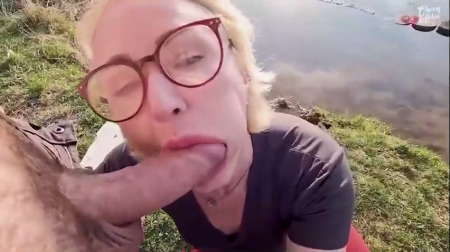 Под открытым небом возле водоема присели отдохнуть россияне, достав с собой две спортивных бутылки, наполненных пенным напитком. Осушив больше половины, было решено записать новое видео - такая работа у этих двоих. Светловолосая милфа в очках согласилась и первый же кадр сделала вполне себе удачным - она заглотила так, что глаза на лоб полезли, куда она потом убрала свои очки, чтобы не мешали, но многим нравится смотреть именно на очкастых сосалок, так что она их возвращает обратно и пачкает об залупу, которой ей поводили по окулярам просто ради прикола.