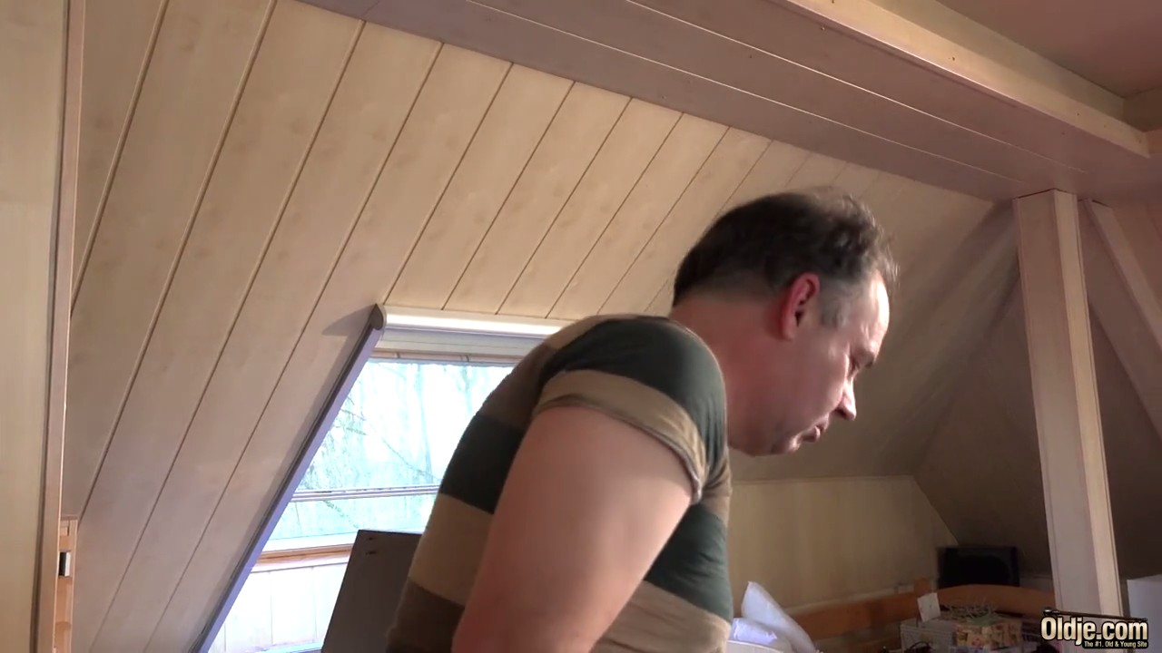 Работница хостела заправляла одеяло в пододеяльник и уже не думала, что постоялец вернется, так как время позднее. Но нет, он появился с маленькой баночкой пива в сильно подвыпившем состоянии и стал критиковать работу молоденькой Нелли, которую почему-то называл медленной как пингвин. "Пингвиненок" даже не обиделась, но сильно охренела, когда увидела, что старый толстый пьяница снял трусы и попросился побыстрее в койку. Ее взгляд надолго задержался на его небольшом достоинстве и, попросив разрешения, геронтофилка принялась у него сосать, а также трахаться, преспокойно уложив последнего в койку.