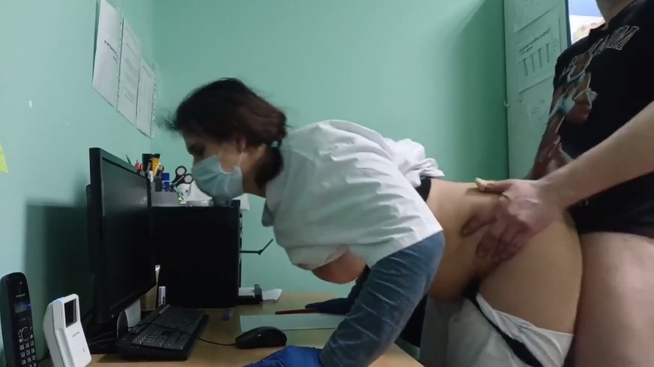 Больница еще толком не успела открыться с утра, молодой человек приехал к своей подружке-врачу, чтобы заняться кое-чем интересненьким у нее в запертом изнутри кабинете. Она была точно не против, чтобы он пристроил свой писюн у нее между ног, а сама толстушка в белом халате и маске готова для него постоянно поддерживать сиськи голыми, дабы было приятней присовывать. Дела 100 процентов коронавирусных времен, так как сам перец в масочке на лице порет сперва раком доктора, а потом усадив попкой на стол.