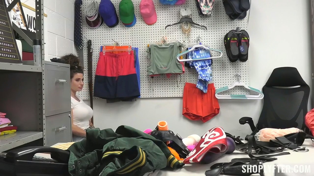 Воровка оказалась в непривычном для себя месте - кабинете охранника, который и увидел на камерах как покупательница затаривается нахаляву игрушками. Давненько ни один мужчина не проникал в ее дырочку, раз такой набор оказался в большой спортивной сумке. Спрятать добытый скарб некуда, поэтому пришлось признаться в проступке и раздеться догола, а то мало ли чего еще впихнула в себя голодная красавица. Секьюрити дал только два варианта: либо ее забирают полицейские и там разбираются, либо же вопрос решается на месте и все пройдет быстро, так как незнакомка уже раздетая и готова на многое, хоть и чуть-чуть морщится от неприязни.