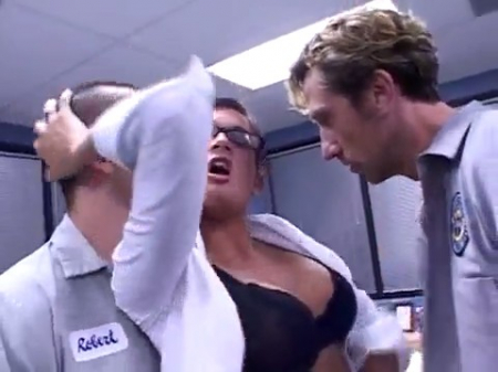 Шлюшка в очках только пришла на работу, но даже не стала приступать к ней, так как взялась звонить кому-то и просить, чтобы прислали двух работяг, привезших три коробки с офисной бумагой. Для них она начала раздвигать ноги под столом и вскоре они поняли, что здесь их очень ждали. Твари дали отсосать как следует, после чего вся троица отправилась на рядом стоящий диван и еще молодцы выяснили, что секретарша очень громкая и можно даже не пытаться заткнуть ей рот - стоны пробиваются через ладони. С ней так происходит каждый раз когда имеют в очко и киску одновременно.