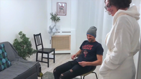 Хозяйка уже собралась как следует помастурбировать, но в дверь позвонили. "А где Колян?" - спросили двое его друзей, давно не видевших ни своего товарища, ни его жену. Муж женщины задерживается, поэтому она пригласила зайти в квартиру и попить вина. Уже в эту секунду ее нутро сообщило мозгу, что пора действовать и тогда она одного из мужчин посадила поближе, начав трогать его хер через штаны. Вскоре и второй участник домашней групповухи присоединился, вместе откупорив ротик и влагалище распутной женщины, накончав ей на очки, пока опаздывающий супруг не вернулся домой.