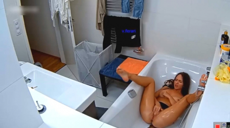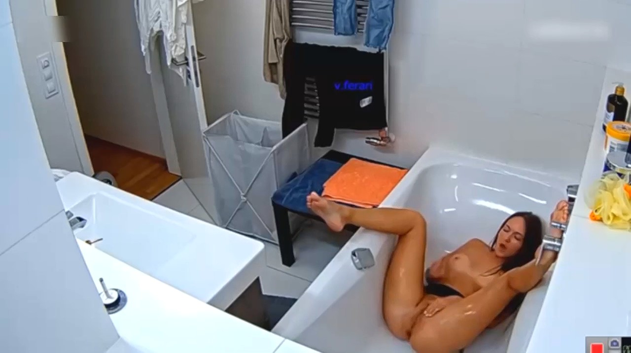 Как это обычно происходит - пара не сошлась характерами и парень расстался со своей подружкой, не ставшей искать кого-то на замену. Вместо этого она каждый день пользуется классным подарком в виде ванны с очень удобной мощной струйкой сбоку. В благодарность онанистка так же не стала отключать камеру умного дома, что установлена на потолке и каждый раз она специально заводит свое шоу мастурбации, чтобы экс-молодой человек мог смотреть как бывшая кончает от струй воды из лейки и самой ванны, стирая свой член рукой от крайне возбуждающего вида онанирующей девушки.