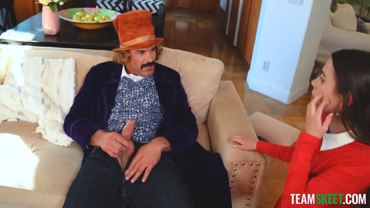 Проснувшись утром совершенно голенькой, маленькая девушка обнаружила рядом с собой целую упаковку любимых сладостей вместе с золотым билетом на секс-фабрику Вилли Вонки. Помыв волосатые подмышки и пах, красивая малютка отправилась к старому извращенцу, чтобы посмотреть на его дом. Но не вкусных конфет хочет юное дарование, она хочет лишиться девственности с самым известным сказочным персонажем этого города и, чтобы этот процесс подсластить, мистер Вонка положил гостье новую конфетку на язык, чтобы дефлорация влагалища прошла как можно более вкуснее. Да и сама сперма так намного слаще!