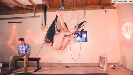 Вебкамщица пригласила товарища к себе в гараж, где у нее есть все, чтобы представить себя настоящей работницей цирка, правда, сегодня очень холодно, из-за чего даже понадобилось включить обогреватель. Парень не сразу понял, что попал в руки извращенки, но чем дальше шло время, тем меньше оставалось одежды на акробатке. В итоге он уже стоял с расстегнутыми штанами и давал перевернутой на подвешенном металлическом обруче стройной соске за щеку, а потом смотрел ей прямо глаза-в-глаза когда трахал телочку на весу. Самый последний кадр с оргазмом парня был очень резок и он пришелся на лицо, когда уже сняли резинку с пениса.