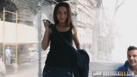 Мужчина с видеокамерой подошел к симпатичной телочке и завязал с ней непринужденную беседу, а потом предложил секс в необычном месте. Любопытство было сильно и девушка отправилась вместе с мужиком. Прозрачный куб (прицеп автомобиля) действительно стал не совсем обычным местом - ты видишь всех, находясь внутри, тебя никто не видит. Уже на месте незнакомец достал толстенную пачку денег и шлюшка готова стала на все, хоть для приличия еще немного и "поломалась".