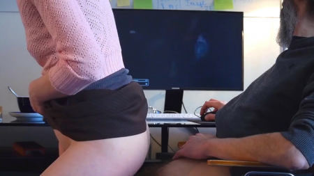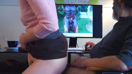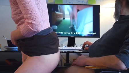 Старый извращуга взялся опять за старое, включив на экране компьютера какой-то сборник домашней порнушки с неверными женами и куколдами. Наверное, старичок собирался подрочить, но у него в доме находится еще молодая любовница, которая просто молча подошла и села на его вставший хуй, направив его прямиком во влагалище, уже достаточно увлажненное, чтобы сесть сверху без видимых сопротивлений мышц влагалища. Седовласый мужчина повернул голову в сторону видео с порнушкой, пока на его член медленно насаживалась девушка, шликающая себя рукой.