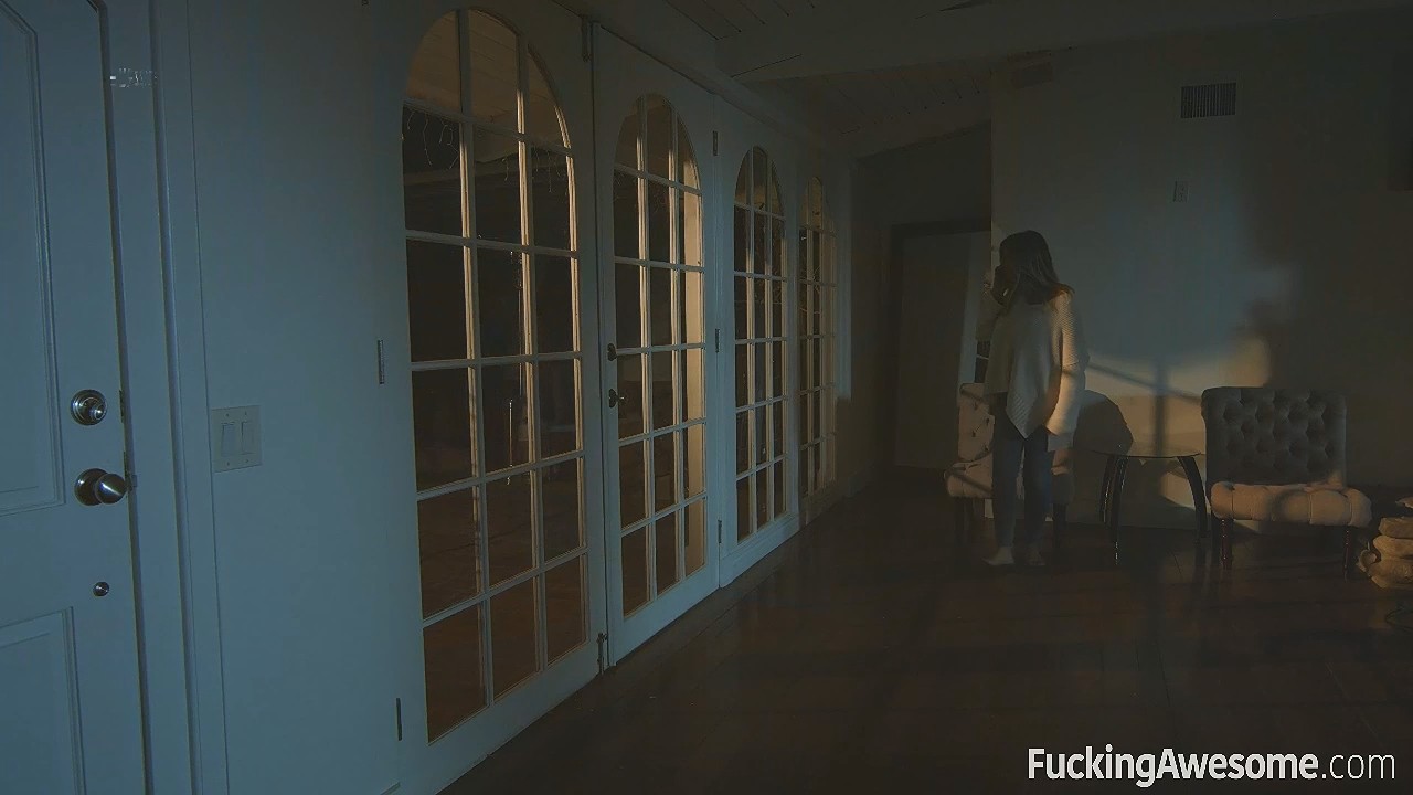 Первый звонок и показалось, что незнакомец просто не туда попал, но он тут же перезвонил вновь. Это уже становится похожим на преследование, ведь он не говорит чего хочет. Это пока что, на третий звонок странный голос сказал, что просто хочет поговорить. Так как хозяйка готовит попкорн, у нее есть немного времени обсудить страшные фильмы. Но, чем дальше заходит беседа, тем более настойчивей и грязнее становятся слова незнакомца. Бросить трубку он не разрешил и придется послушаться, ведь перед окном сидит привязанный к стулу бойфренд-каратист и теперь героине несдобровать. Началась погоня, остановившаяся возле кровати. Оказалось, что это тот самый бойфренд Зандер так разыграл любимую, надев во время акта любви белую маску из триллера Крик (Scream).