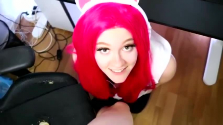 Из-под стола вылезла пососать героиня эротической игры