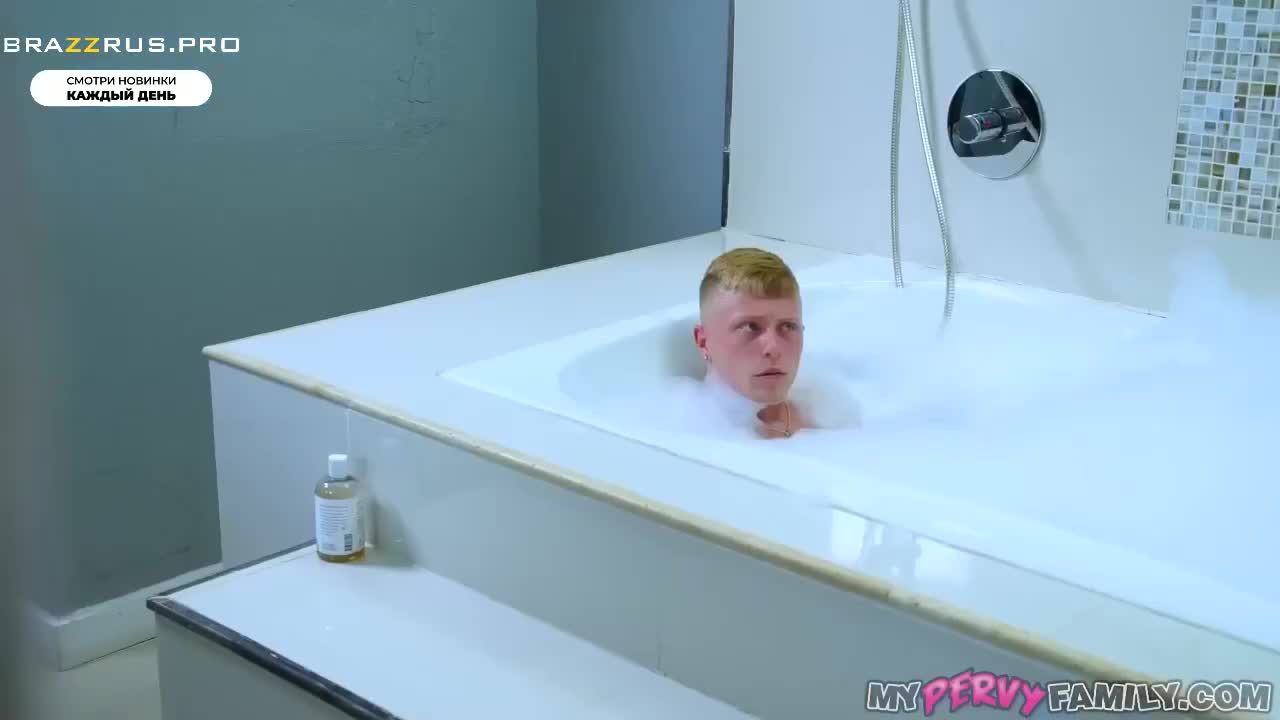 Парнишка набрал полную ванну с пеной и принялся под ней дрочить. В ванную комнату зашла мачеха в нижнем белье, тоже собравшаяся на водные процедуры. Она была возмущена, что он взял ее дорогое средство и попыталась прогнать прочь, а когда увидела сильную эрекцию голого парня, попросила не торопиться уходить. Взяв в ротик, развратница отвела парнишку в спальню, чтобы его оттрахать как следует. Изменой блондинка такое не считает, ведь муж не умеет удовлетворять как молодой, которому придется пойти и все же почистить ту самую злосчастную ванну, чтобы зрелая потаскушка могла расслабиться после крутого секса.