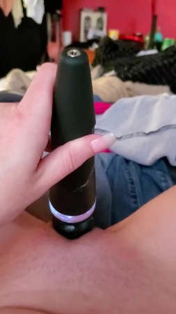 Очень возбужденная представительница прекрасного пола дома на выходных захотела помастурбировать и так она была возбуждена с самого утра, что понимала - этот оргазм будет необыкновенным. Забегая вперед можно с уверенностью сказать, что так оно и вышло и вот почему: на первых секундах мастурбации онанистка использовала вибратор стандартным способом - прикладывая к клитору его движущуюся часть, а когда возбуждение взяло верх, героиня запихала внутрь набалдашник инструмента по достижению блаженства, отчего сучка еще сильнее кончила и ноги ее стали непроизвольно сжиматься, а телефон стало труднее удержать посередине.