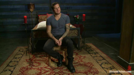 Сидящий на стуле со связанными руками за спиной мужчина не видел свою хозяйку. Она некоторое время лежала на постели и любовалась своим владением, но пришла пора действовать и наказать красавчика за то, что у него между ног висит член. Сперва красивая доминатрикс подрочила его, яростно, с особым остервенением, заставила его стонать от боли и удовольствия. После этого опытная проказница пальцами поковырялась у него в заднице и поняла, что нужно надевать страпон и трахать его узкий анал. Вскоре и сама доминантка примерила киской его пенис, отдрочив бедолаге на его собственный живот.