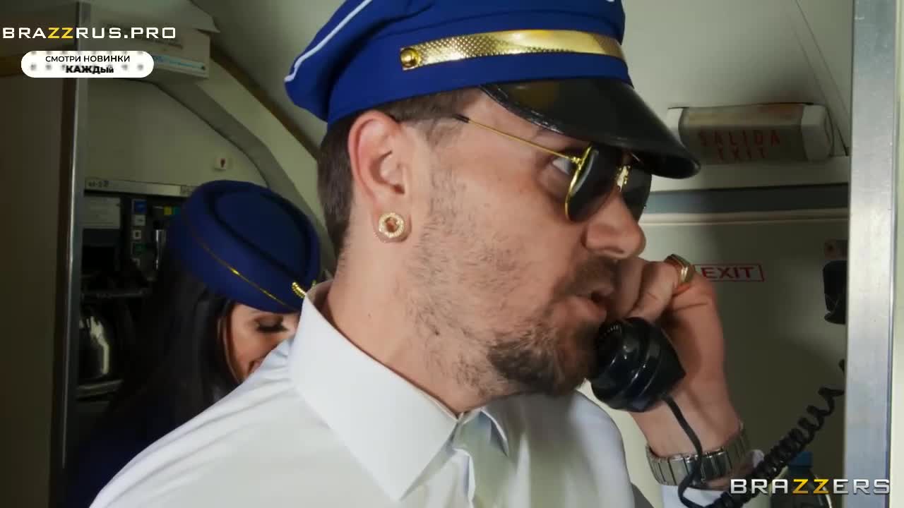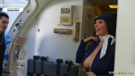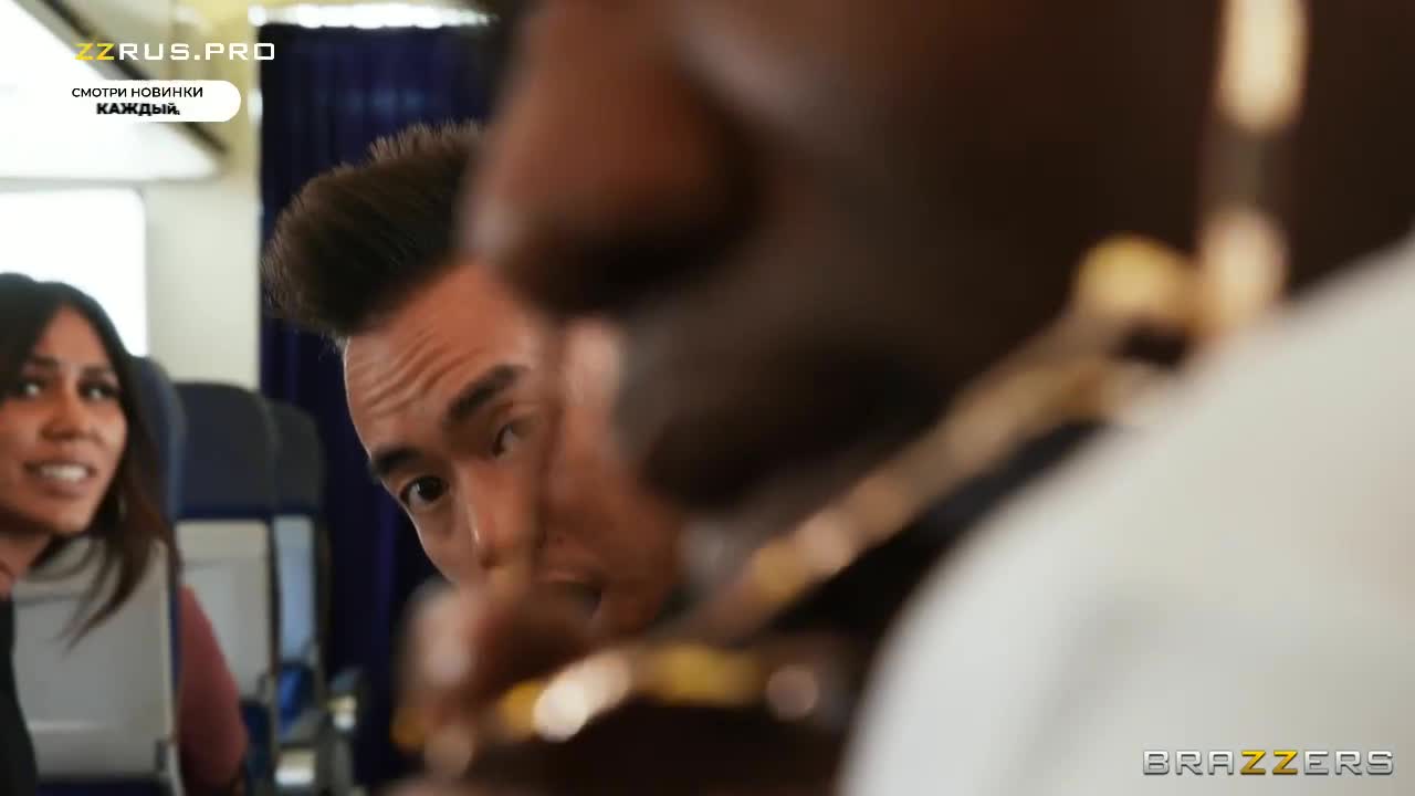 Стюардесса приветствует пассажиров при входе в самолет. На нее смотрят как на сумасшедшую потому, что у нее на лице осталась сперма от того парня. Особое внимание грудастая бортпроводница привлекла у мужского пола - ее сиськи буквально выскакивают из одежды в момент турбулентности. Чернокожий парень, на пенис которого она попала в момент тряски, последовал за шторку к женщине со стояком, там же из туалета выпал второй чернокожий пассажир, попавший хуем сразу в рот красотки-милф. Вместе с новым приятелем они пустили по кругу сексапильную брюнетку в классных чулках на зависть остальных, в том числе веселого экипажа.