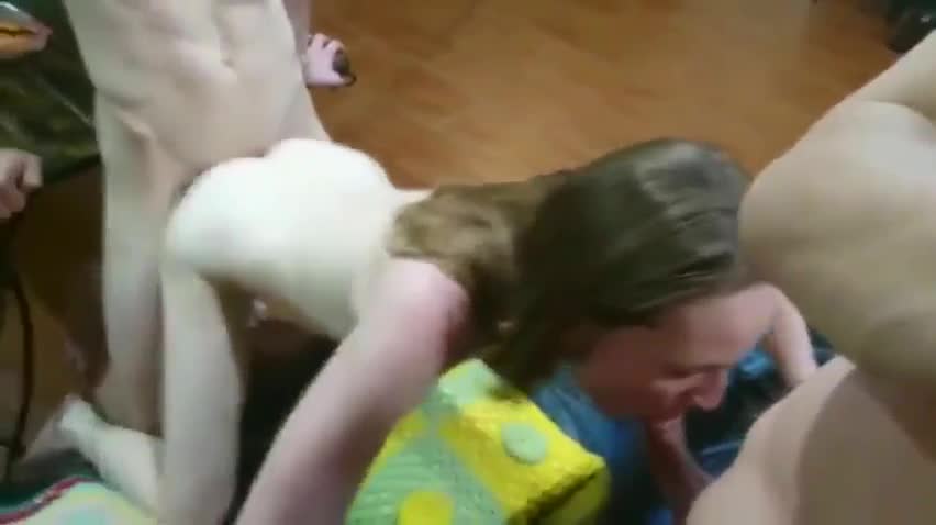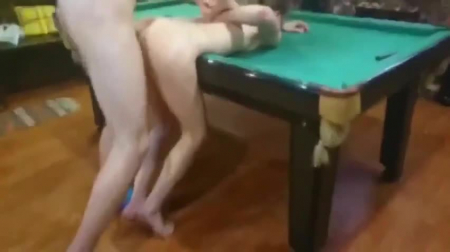 Видео начинается с того, что девушка берет в рот практически под столом, находясь на уровне пениса, где ей не очень удобно, зато приятно тому, кому делают отсос. После этого пританцовывающая под русскую попсу барышня начала манить привлекательной подтянутой фигурой кого-нибудь из мальчиков, чтобы ей впендюрили сзади и один такой вызвался сразу, заставивший открыть рот от кайфа жену. После секса на бильярдном столе, наконец-то, и второй персонаж пристроился, но уже спереди - ему сексвайф отсосала, пока женщину ебали рачком - в ее любимой позиции вообще.