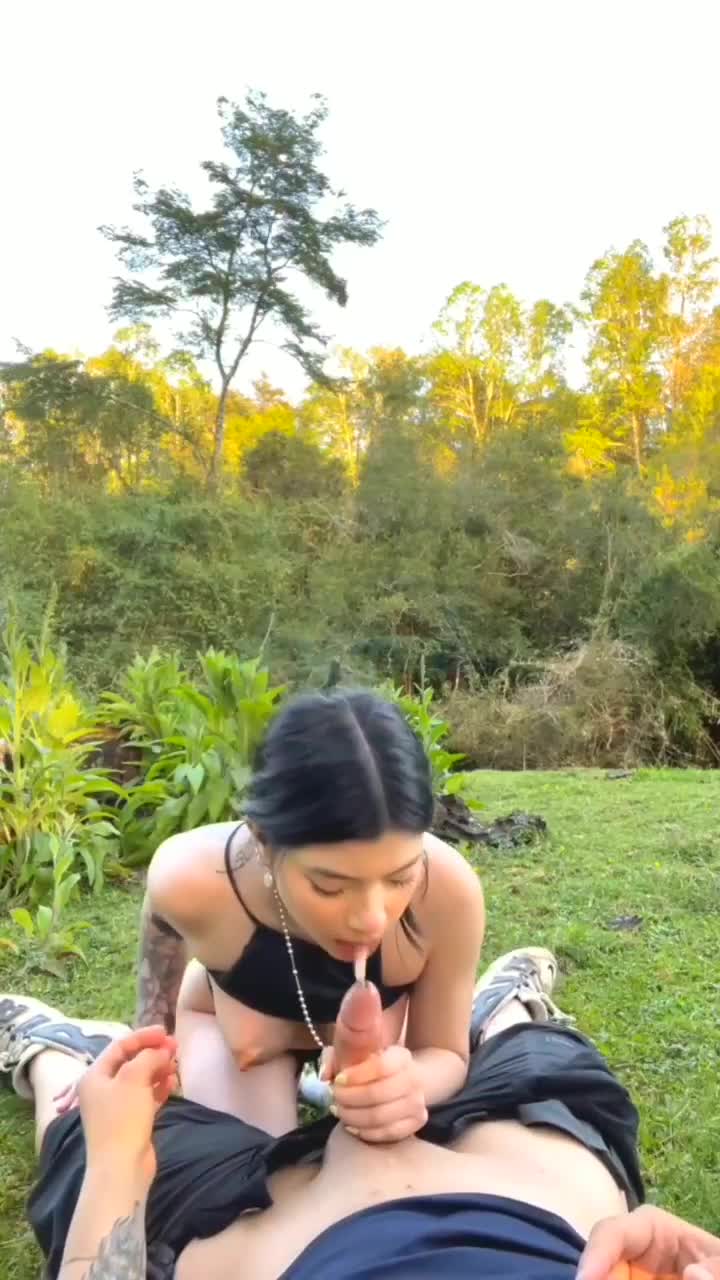 Очень красивая молодая девушка верхом на бойфренде, он крутит ее маленькие спелые сосочки между пальцев, телочка нежно стонет. Вокруг трахающейся парочки гуляет черная собака, косясь на обоих - питомцу тоже бы хотелось кому-нибудь присунуть, а пока хозяйка пса скачет сверху и, слезая со стояка, дрочит хуй рукой, после чего поворачивается задом и продолжает трахать писей бойфренда, лежащего спиной на траве. Классная анальная дырочка так и просит члена, но вскоре парень вытаскивает из пилотки достоинство и с самым кайфом кончает себе на живот под одобрительный взгляд симпатичной подружки.