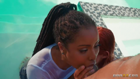 Негритянка облила себя и рыжую подружку маслом, растерев по ее огромным дойкам. К девчонкам-лесби присоединяется голый длинноволосый смуглый парень, давший пососать его член, похожий на жилистый сникерс. Больше всего отличилась черненькая, заглатывая его до яиц, напарница же просто пососала в воде и начало секса произошло под открытым небом, а уже потом все трое переместились на кровать, чтобы устроить очень крутой трах, где телочки не только интенсивно использовали пенис парня, но и друг с другом развлекались по достоинству. [Brazzers] Kira Noir, Abigaiil Morris - Oiled Up.