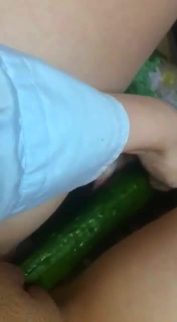Обладательница нежного юного стона обрадовалась когда открыла холодильник. Родители вчера прикупили много свежих фруктов с овощами и один из крупных экземпляров огурцов привлек внимание маленькой извращенки. Она, стоя перед агрегатом, уже представляла все ощущения, которые ей может доставить зеленый овощ. Малышка побежала к себе на кровать и стала медленно засовывать своеобразную "секс-игрушку" себе в писечку на всю длину, тихонько постанывая в камеру телефона, которой она крупным планом снимает как между пухленьких губок проталкивается то, что дарит кайф.