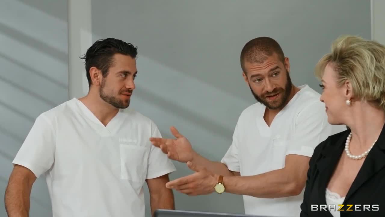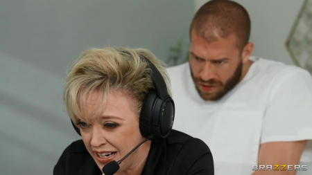 Молодой человек рассказывает своему коллеге про недавние приключения с телефонисткой из их офиса. Он говорил как классно грудастая мамаша жарится в задницу, но бородатый не мог поверить в такие голословные заявления, пока не увидел лично как короткостриженная милф его поцеловала, надела наушники с микрофоном и не отвлекалась когда ее юбку приподняли, начав тщательно ласкать задницу анальной пробкой. Парни перехватили звонок на себя пока тетя им отсасывает под столиком, а потом просто устроили телефонной звонилке двойное проникновение на работе, закрыв ноутбук к чертовой матери.