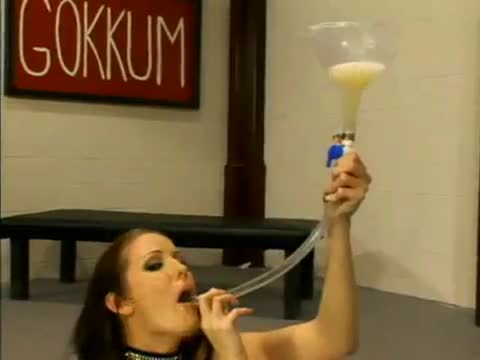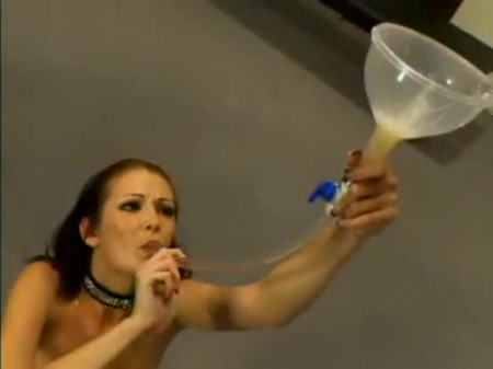 На полу сидит красивая голая шлюха, держащая пластиковый бокал с трубочкой возле личика. Пока емкость перекрыта к трубке, но девушка ждет пока каждый пройдет кончить в емкость, а также ей на лицо просто попутно, при этом извращенка постанывает для незнакомцев, чтобы им было приятно кончать, глядя на ее любовные глазки. Наконец, она начала выпивать всю сперму без остатка, пока фотографы снимают сей исторический момент. Девочке оказалось мало выпитого содержимого - она еще и со всех краев облизала пластиковый бокал, опустевший благодаря этой милой соске.