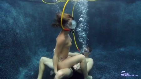 Первой под водой бассейна оказалась девушка с небольшими титьками. На лице актрисы была надета маска, чтобы она могла видеть весь процесс соития с парнем, вскоре присоединившимся. Для удобства к парочке через специальные трубки подается кислород сверху и они могут полностью отдать себя процессу, не отвлекаясь на всплытие на поверхность. Самое интересное тут не сама красотка, имеющая весьма неплохие бедра и красивые ноги, а то как красавица стонет в ту самую трубку для рта, а прекратить это не может и даже не хочет, ведь партнер классно трахается, да и обстановочка располагает на возбуждение. Scuba fun and sex.