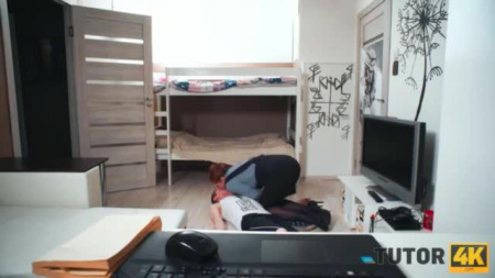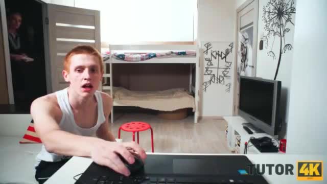 Худощавый дурачок решил разыграть своего репетитора - он притворился больным и дождался когда женщина пойдет взять аспирин в своей сумочке в коридоре. Тогда он быстренько нашел тему про Лондон и склеил страницы вместе. Женщина вернулась и, естественно, не смогла раскрыть учебник. Тогда она пригрозила жалобой отцу малого, но тот схватился за сердце и упал на пол. Ему учительница по английскому попыталась сделать искусственное дыхание и Виталик проснулся, поинтересовавшись почему его губы в губнушке. Сразу после этого ученик приказал крупной сексуальной Валькирии сосать его член. Об этом не пожалела дама когда ее ебли на столике возле дивана под скрытой камерой.