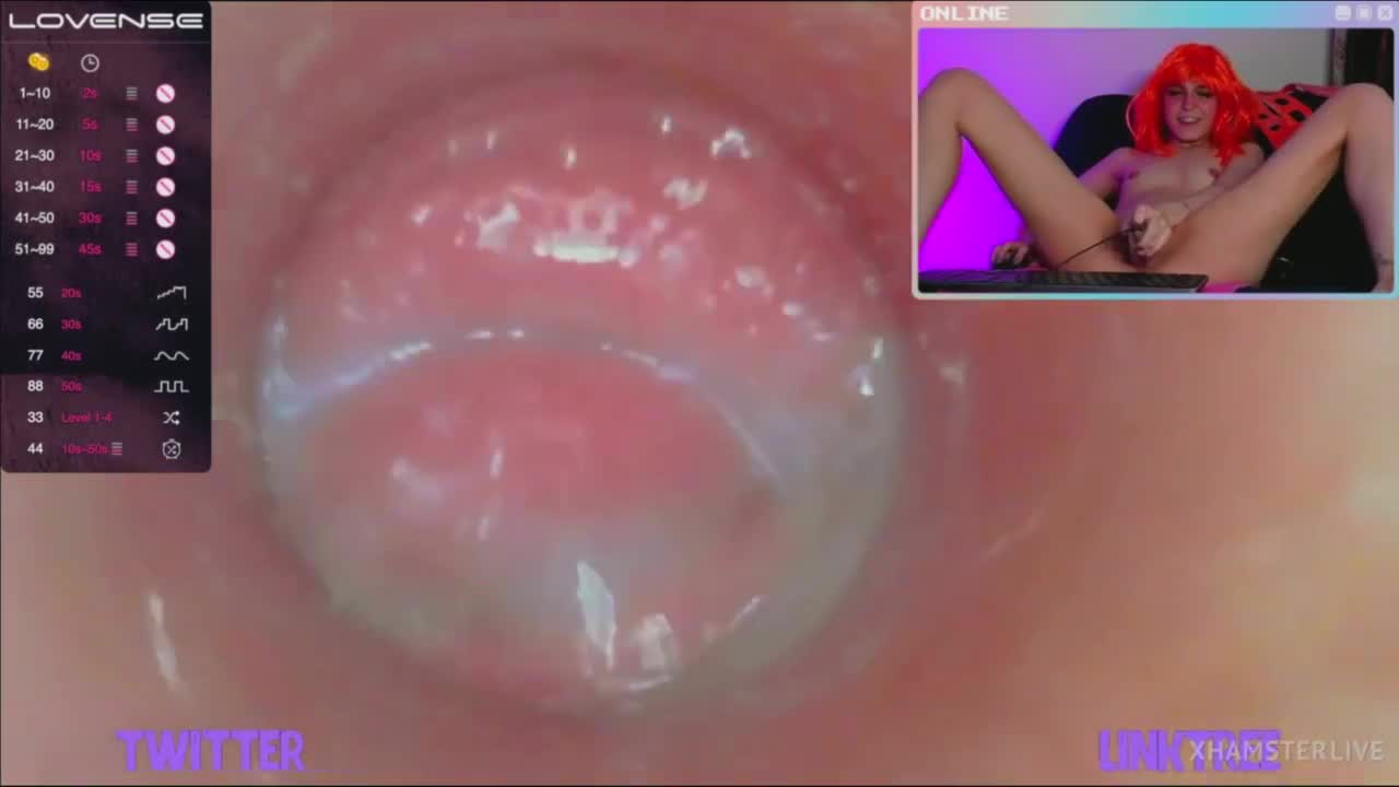 Моделька-экспериментатор Melissa XXS PIE услышала просьбы зрителей трансляции вставить стеклянную трубку с камерой внутрь вагины. Она смазала ее рукой по всей длине и стала неторопливо вводить внутрь, показав себя на весь экран, а потом и крупным планом видео с той самой камеры, что уже находится внутри ее влагалища. Это буквально то, что обычно видит головка члена, пробуривая розовые женские внутренности. Дабы все было как взаправду, малышка взяла для дополнительного кайфа вибратор и от двойного удовольствия вскоре смогла испытать оргазм - трубочкой она дрочила, а вибратор нужен был для клитора снаружи.
