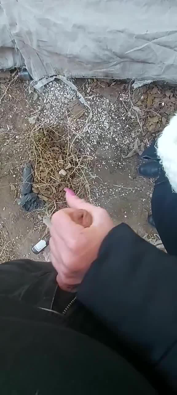 Неизвестно при каких обстоятельствах троица оказалась за какими-то разбомбленными гаражами в холод, но суть в том, что парень дрочил член при двух телочках и предложил кому-нибудь "попробовать". Та что справа с удовольствием взяла его хуй в крепкую руку и стала гонять его шкурку, стоя сбоку. На просьбу вторая не ответила положительно, но сказала, что просто посмотрит. Так продолжалась съемка на телефон несколько минут пока из головки на землю не показала сперма. Девица все сильнее сжимала ствол, легонько подрачивая, будто пыталась выдавить оттуда все без остатка. Молодому человеку очень это понравилось.