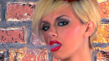 Маленькая и очень худенькая блондинка с татуировками на ноге и руке выдыхает сигаретный дым. Все мысли девушки заняты фантазиями о предстоящей мастурбации, актриса совершенно не волнуется, стоя полуобнаженной в сексуальном наряде перед оператором. Докурив, блонди берет в руку продолговатый вибратор и засовывает себе в вульву, включив на полную мощность, чтобы пирсингованная киска получила максимум удовольствия от мастурбации перед камерой. Эта модель специализируется на самоудовлетворении перед другими людьми и у нас на сайте есть еще видео с данной красоткой.