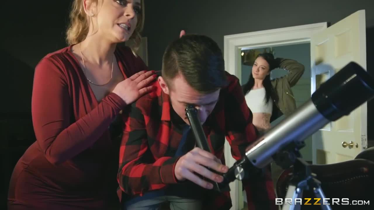 Симпатичная девчонка позвала парня к ней домой, у нее были планы на молодого человека, скорее, романтические. Гость захотел посмотреть в дорогущий телескоп и тут в дело вмешалась хозяйка дома - она попросила дочь оставить ее с ее бойфрендом ненадолго, а сама прикоснулась к его члену, проверив насколько тот готов удовлетворить настоящую созревшую женщину, а не ту юную писюху. Парень не знал как себя повести и просто плыл по волнам удовольствия с опытной любовницей, пока их вместе не застукала та самая черноволосая девчонка, психанувшая на обоих. Нужно было сразу догадаться про мамку, ведь через телескоп она смотрит на мальчиков в соседних домах.