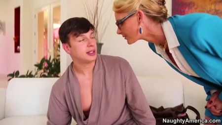 Чувак спит на диване у себя дома, рабочий день давно начался, а у того даже дверь не закрыта. Туда вошла сексапильная начальница, криком разбудившая похмельного сотрудника. Тот от неожиданности подскочил и спросил у блондинки какого хрена та тут забыла. Выяснилось, что вышестоящее руководство так сильно на нее надавило, что у той возникло желание дать свой телефон проспавшему работничку и попросить его записать как она делает ему минет, чтобы потом отправить генеральному, дабы к ней лично не было вопросов. На минете, естественным образом, никто останавливаться не собирался и после оргазма пора приступить к работе - парень отошел от похмелья пропотевшись.