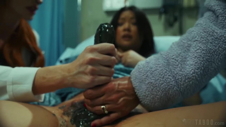 Вместе с мамой прочитав молитву за ужином, азиатка пошла в свою комнату, но не чтобы спать, а чтобы мастурбировать на групповое порно. Проснувшись утром, девушка сразу почувствовала что-то неладное между ног. И действительно, там вырос большой черный пенис, наполненный до краев какими-то чернилами. Вместе с мамой героиня фильма ужасов экстренно направилась в больницу, где рыжая медсестра ничего умнее не придумала, нежели попробовать удовлетворить этот зловещий стояк групповым лесбийским половым актом. Но, кажется, это только сделало хуже. [AdultTime] Lulu Chu, Penny Barber, Sophia Locke - The Growth.