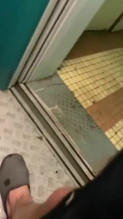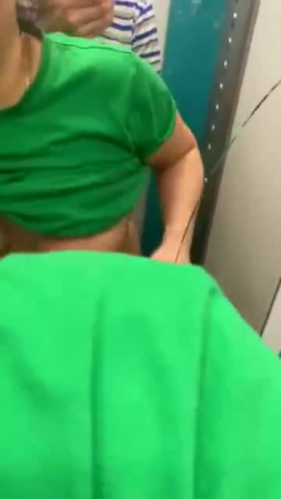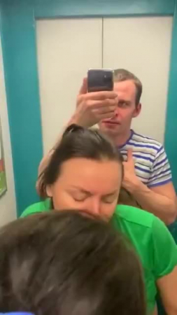 Парень со своей подругой заняли лифт в дневное время, когда все должны быть на работе для того, чтобы там как-то разнообразить совместную половую жизнь. Еще не дождавшись открытия дверей лифта, гопник уже достал свой член, а ведь внутри кто-то мог быть, но яйца уже бурлят и, когда парочка извращенцев заходит внутрь кабины, любовница тут же присаживается на корточки и начинает сосать его член, пока лифт не вызвала соседка с бутылками для воды, с которой все трое поехали до первого этажа, чтобы вновь нажать на верхний и потрахаться рачком лицом в зеркалу без зеленой футболки, а в конце надрочить пышную влажную пизду рукой.