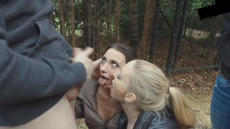 Две очаровательные телки ищут острых ощущений, ведь классический секс им надоел до одури. Девушки в коротеньких шортиках останавливают случайную машину и предлагают незнакомцу свои услуги. Мужчина спрашивает о цене, приняв девок за обычных шлюх, и получает ответ, который очень устраивает его. Подружки садятся в машину и уезжают в лес, в котором девушки и сделали минет незнакомцу.
