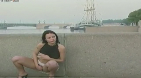 Красивая брюнетка пришла на пустынную набережную и нежно удовлетворила саму себя. На камеру стройную милашку снял ее знакомый, который наблюдал за девушкой через объектив. Потрясающий вид на Неву и мастурбирующую красотку очень возбуждает и остаться равнодушным просто невозможно.
