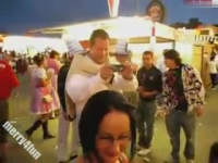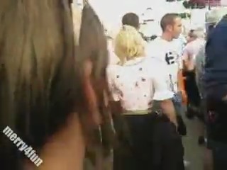 На шумном фестивале, где множество пьяных людей никто практически не обращает внимание друг на друга. И вот посреди этой толпы нашлась озабоченная шлюха, которая готова отсосать незнакомцам. Милашка на корточки садится и расстегнув ширинку, берет "освободившийся из плена" член.