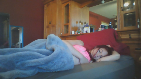 Симпатичная девушка спит и снится очаровашке сон эротического содержания. Прелестница просыпается, но не совсем (она погружается в состояние дремы) и начинает дрочить себе. Когда же во сне и в действительности спящая девушка достигает пика наслаждения, она поворачивается на бок и снова крепко засыпает.