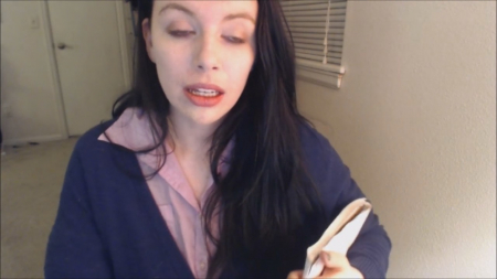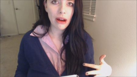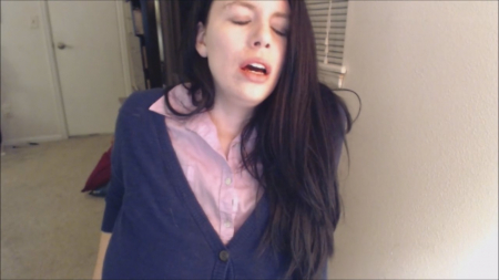 Симпатичная телка с огромными сиськами перед камерой записывает свой монолог. Но во время записи довольно странная дамочка резко возбуждается и начинает трогать аппетитную плоть. Потом так же резко девушка "возвращается" в обычное состояние и продолжает говорить. Но волна снова накатывает - только еще сильнее - и симпатяга начинает трахать себя пальцами.