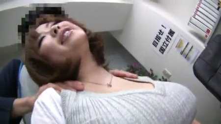Грудастая японская учительница дала потрогать свои сиськи